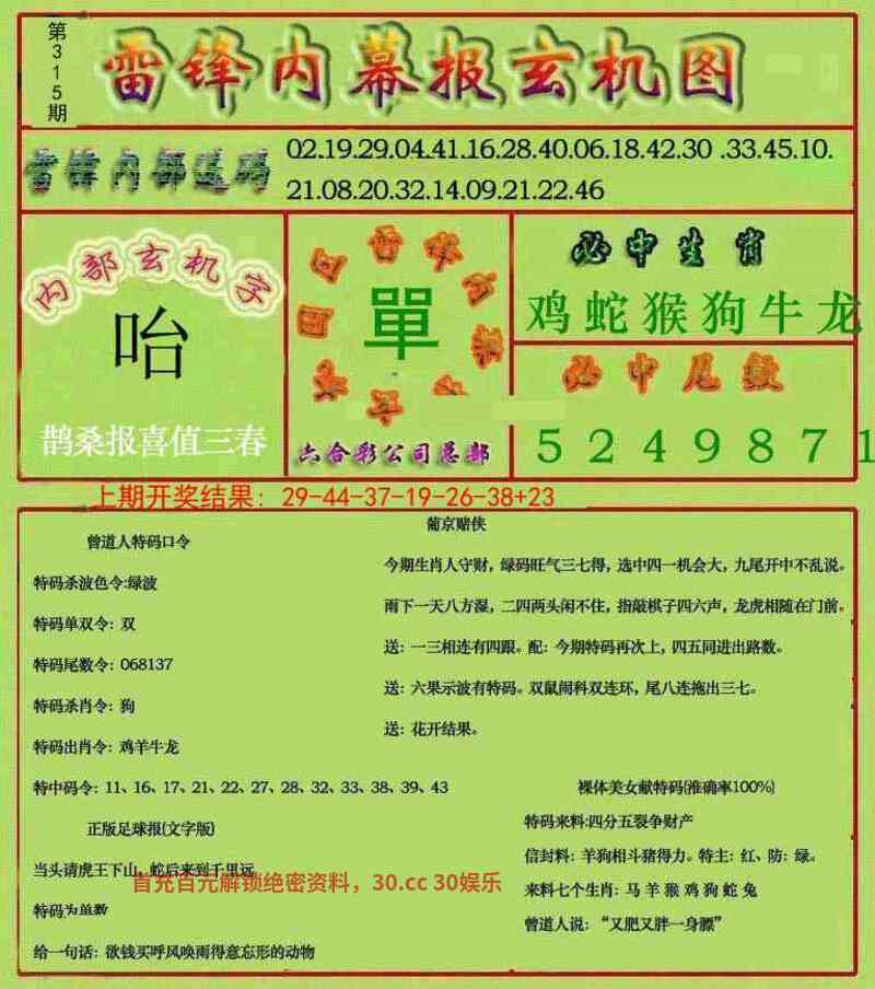 297期:男女两肖男肖+兔鸡』开:狗44准