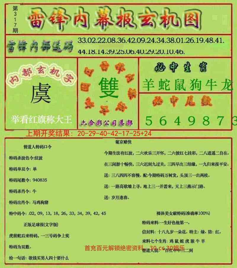 317期:家野两肖野兽+鸡马〗开:鼠18准