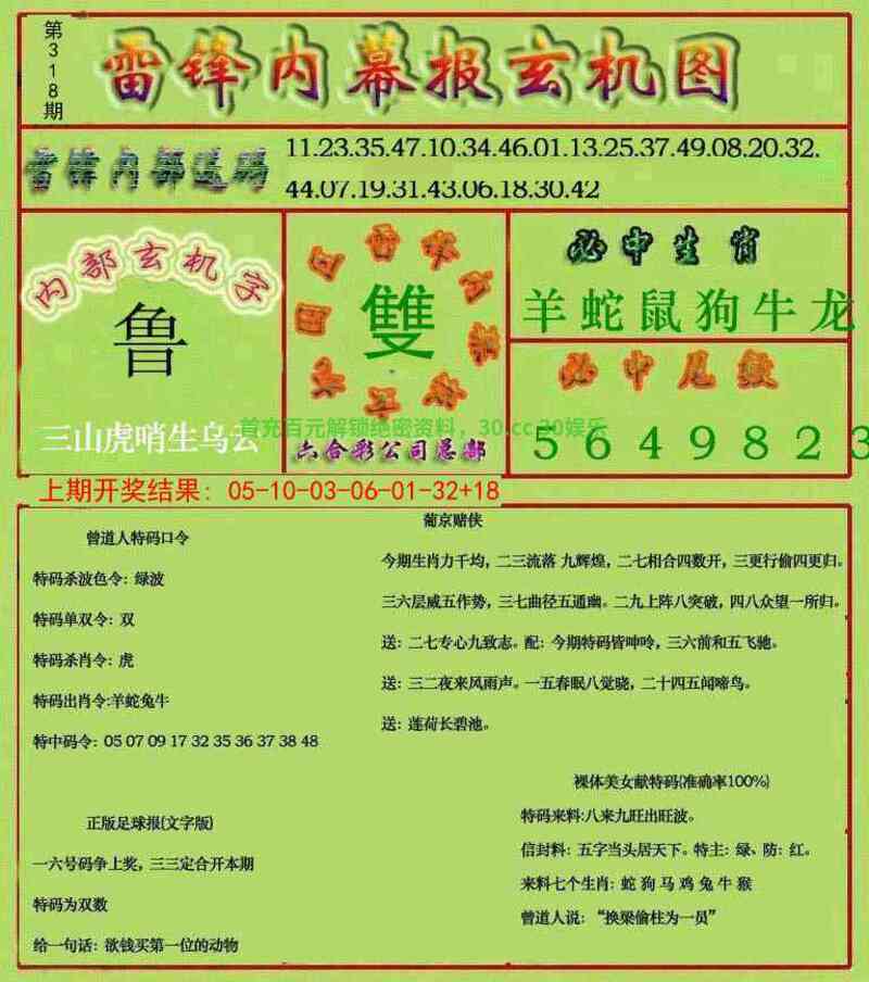301期:男女两肖男肖+兔鸡』开:牛05准